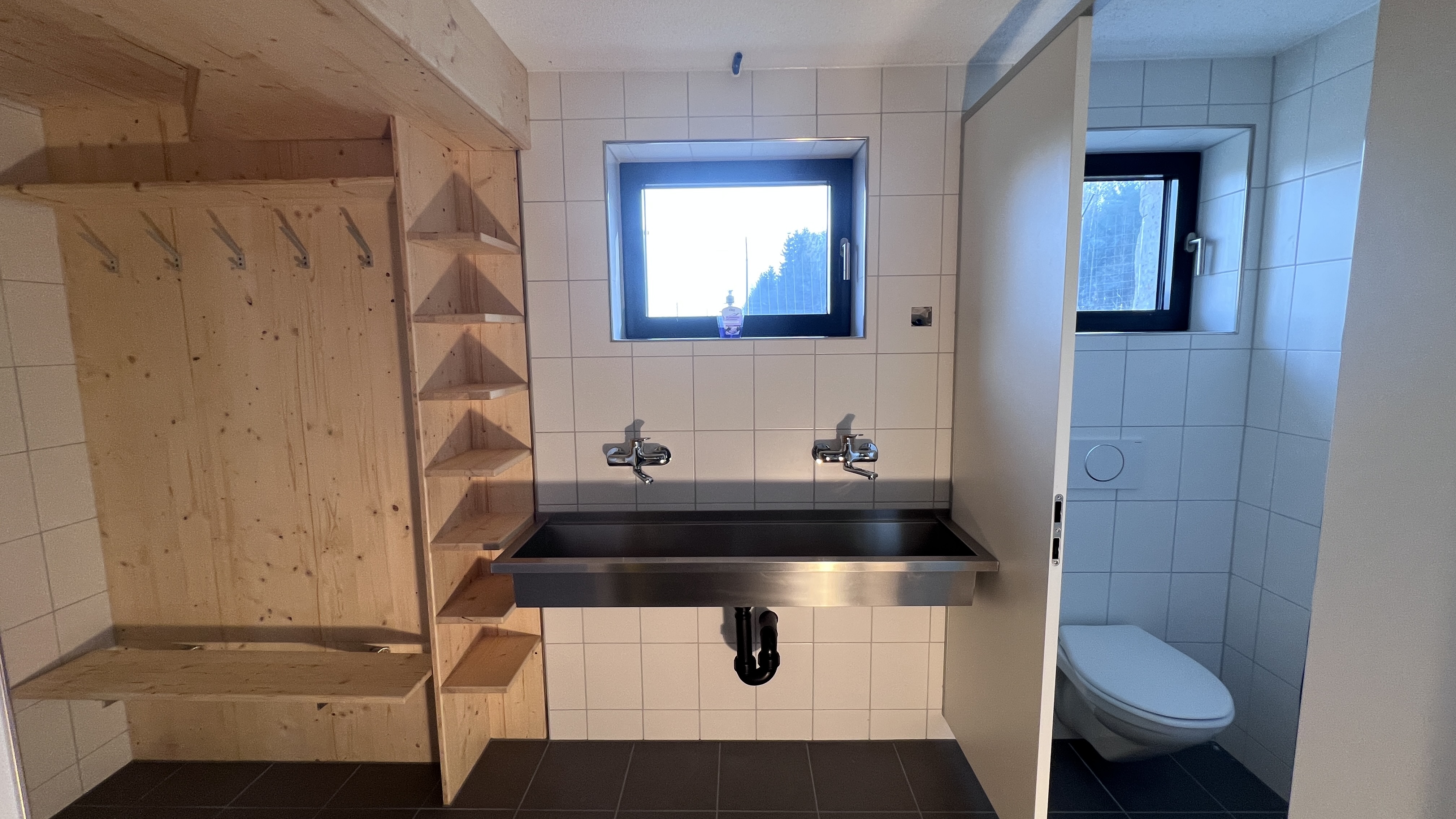 WC-Anlage mit separatem Zugang zur Dusche.